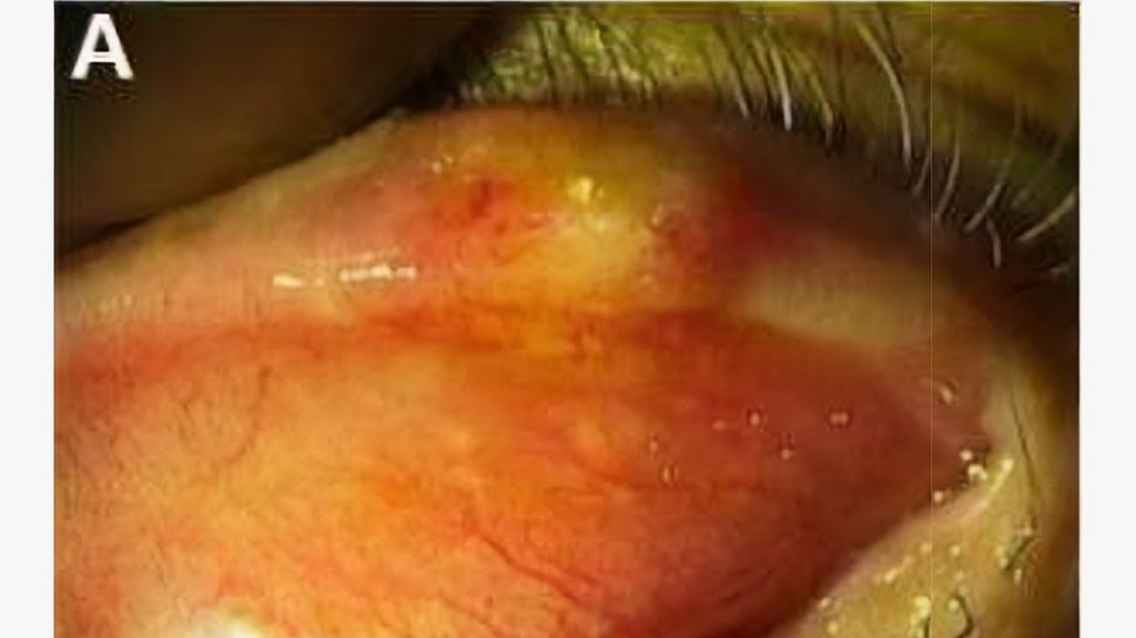 Sebaceous carcinoma most commonly appears as a yellowish mass in the upper eyelid. (Copyright © 2014 Nemoto et al. This work is published by Dove Medical Press Limited, CC BY-NC 3.0)